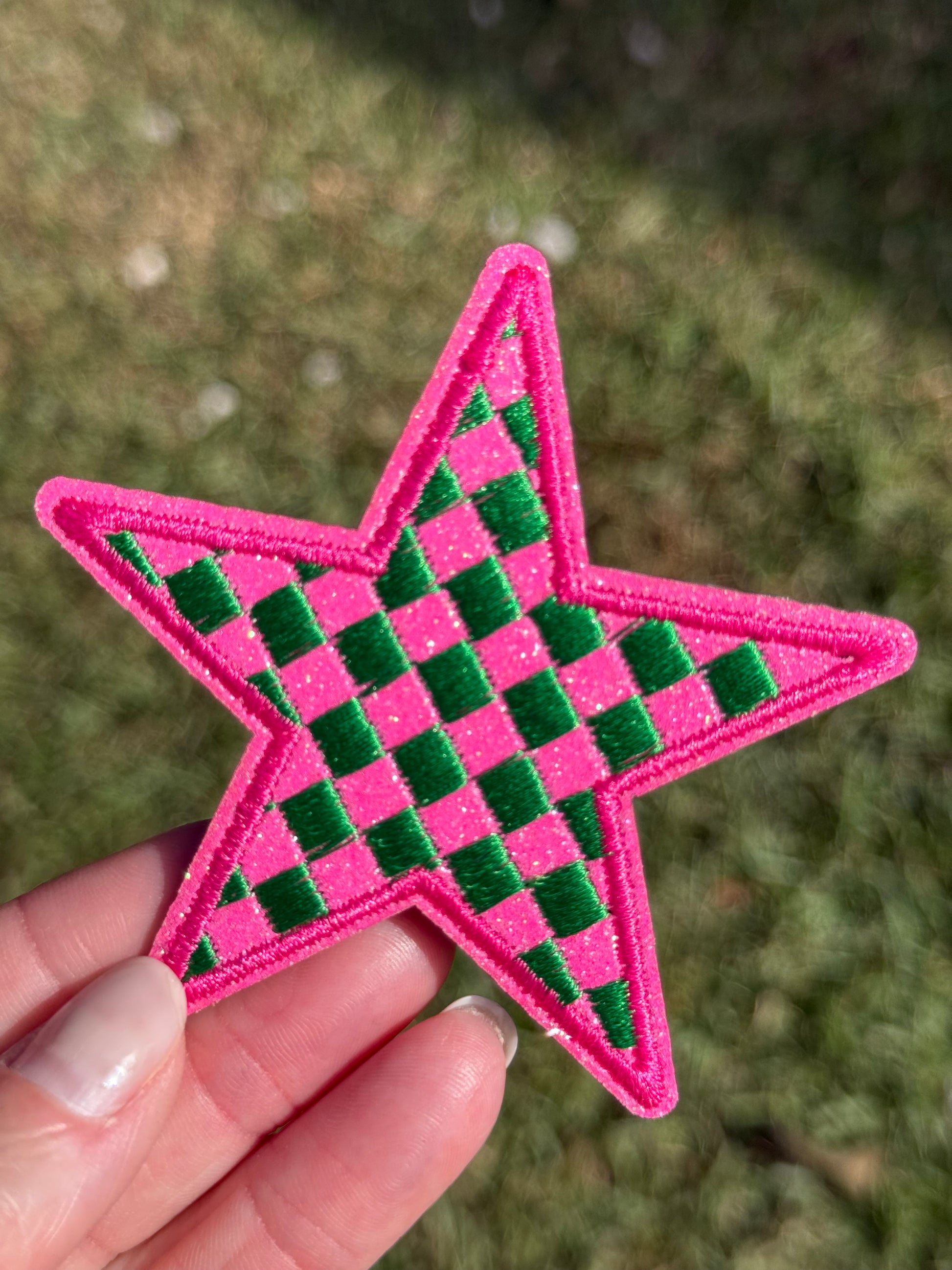 3” Pink/Green Checkered Star